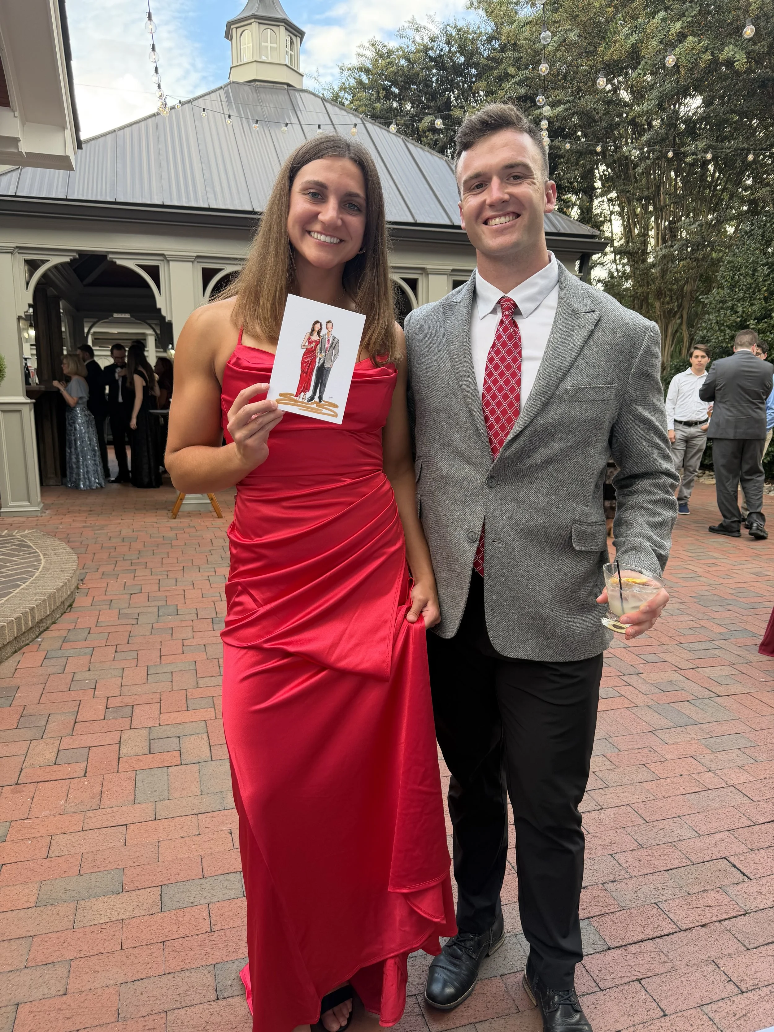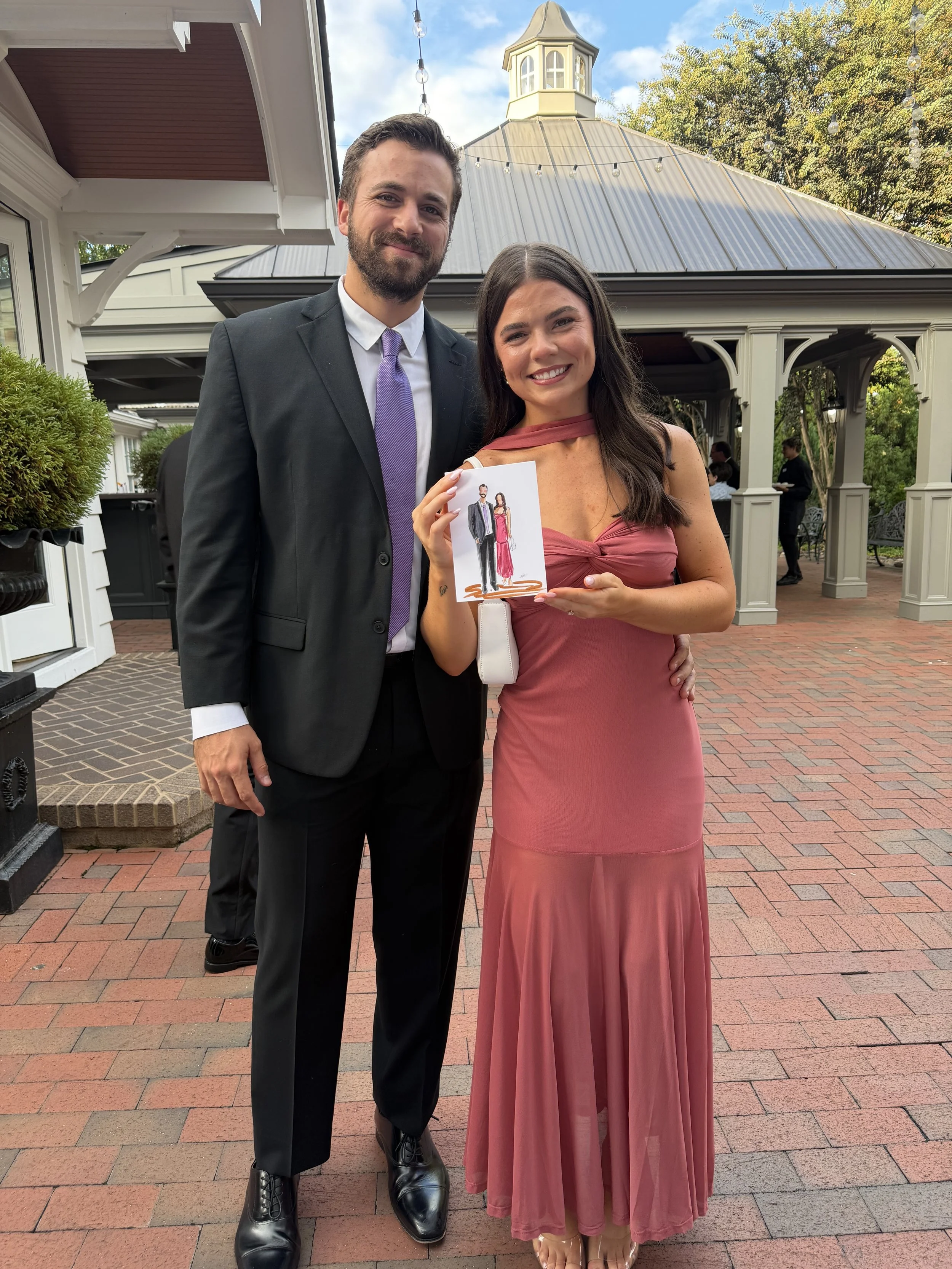 5”x7” water color portraits, ready to frame, for every guest who chooses to have one created. It is always the goal to finish on site, but if it is impossible due to guest count or the evening gets away from her, Hannah will take home and finish in studio to ship out at a later date!